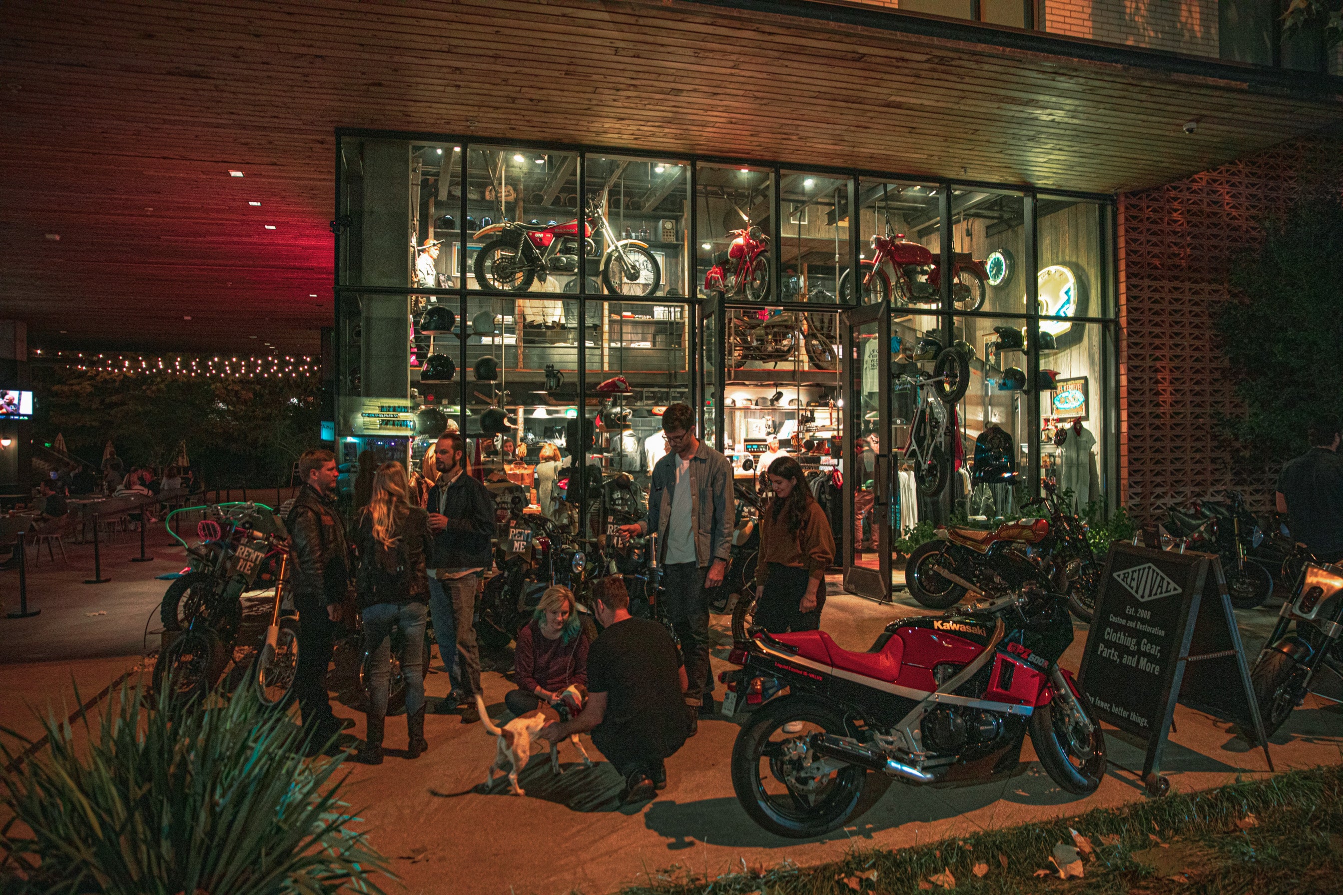 The night started with some friends making rounds, but as the sun set, we drew a crowd and caught the attention of just about every person riding by on a motorcycle. We even had a wedding party stop by at one point. Bit by bit, the sidewalk was filled with everything from a medieval armor-clad Honda Shadow (Sissy-bar Sword Included) to a spankin' new Aprilia RS660 - just the kind of mix we like to see.