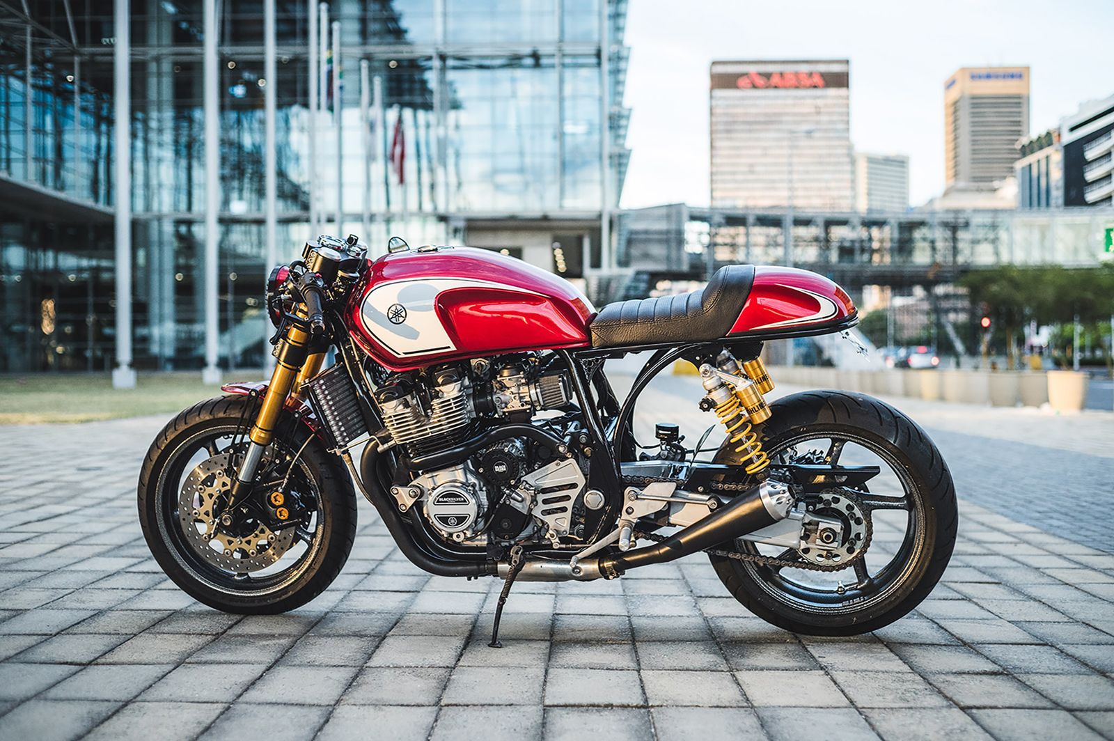 This Yamaha XJR 1300 came to Ian "in a sorry state, begging for love." With really the only redeeming quality being a good solid motor. Starting in on the project around 2015, Ian spent about three years methodically working through the restoration, only farming out the water jetting of the triple clamps before performing the final machining himself. The motor was in such good shape that it really didn’t need any work itself and it’s fast enough on it’s own to not need any significant performance enhancements. The carbs did require a full rebuild and the electrical issues were exceptionally frustrating to track down.