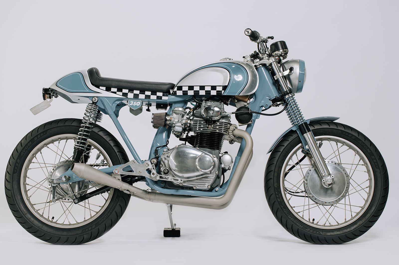 David had previously built a stunning XL600R with his son James, so naturally his daughter Sonya had to stake her claim. After months of looking, they found a 1968 Honda CB350 at the Barber Vintage Festival swap meet that was in “fair condition,” which for them meant bringing the bike home on a trailer. As David, who makes a living as a new home contractor, wryly explains, it was “an impulse buy that we knew would need a little work. Then we decided to make it a lot of work with countless hours of sanding, smoothing and polishing.”