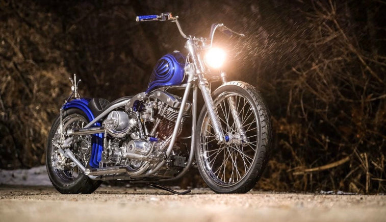 We’re no strangers to Ryan Gore’s work; this one is just one example of the pretty stunning choppers he continues to build. All of the details in the handmade bits are what really grabbed our attention. The handlebars and risers, foot controls, kicker arm, sissy bar, engine mounts, petcock bung, exhaust, tank, and fender were all made by Ryan himself... And let’s not exclude that stained glass battery box!
