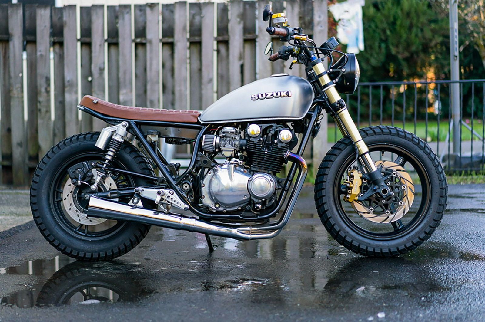 He managed to pick up a 1982 Suzuki GS650 for $500. It had low mileage, but was not running. Over the next six months, the two of them got started on the bike. Doing all the work themselves, including the wiring, welding, and fabrication.