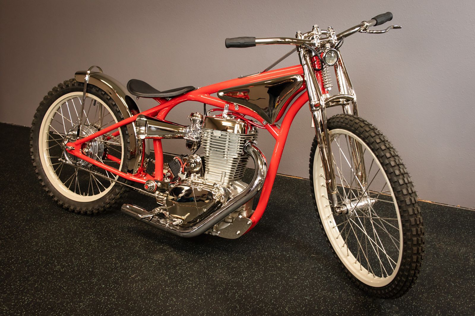 We asked Steve, why speedway? With a wry smile, Steve told us, “Speedway was an offshoot of board track racing, and since I built a board track racer, it was a natural progression into speedway. Plus, I'm intrigued by the fact that after a hundred years, the bikes are still virtually identical to speedway from the 1920s: 500cc, 148 lbs, no brakes, methanol-engined buzz bombs.”